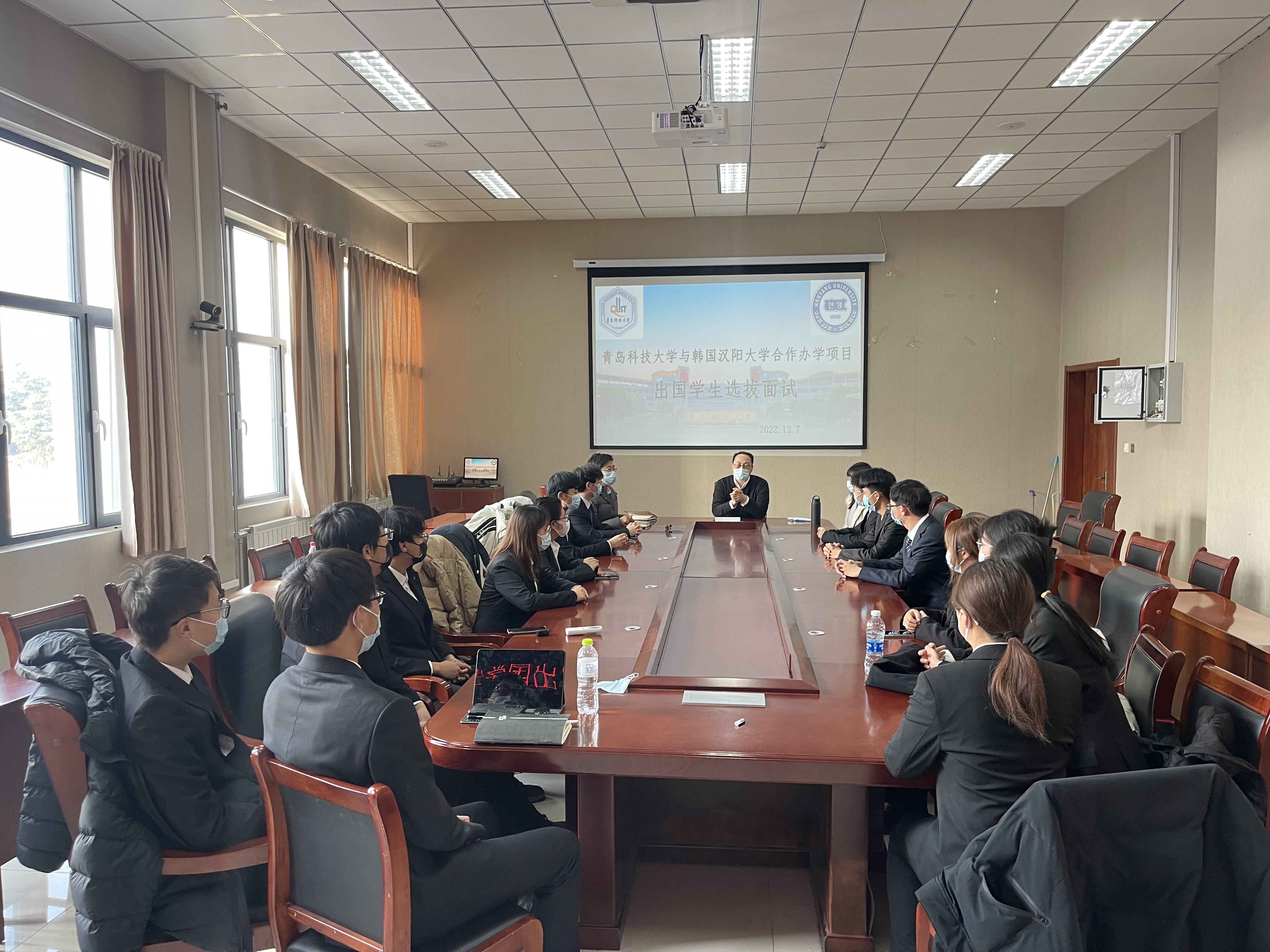 面试前,学院教学院长李剑光给学生们加油鼓劲,祝愿大家都能考试顺利,取得佳绩,并且如愿以偿得到赴韩交流学习的机会。另外,辅导员和合作办学办公室负责人也出席了会议。