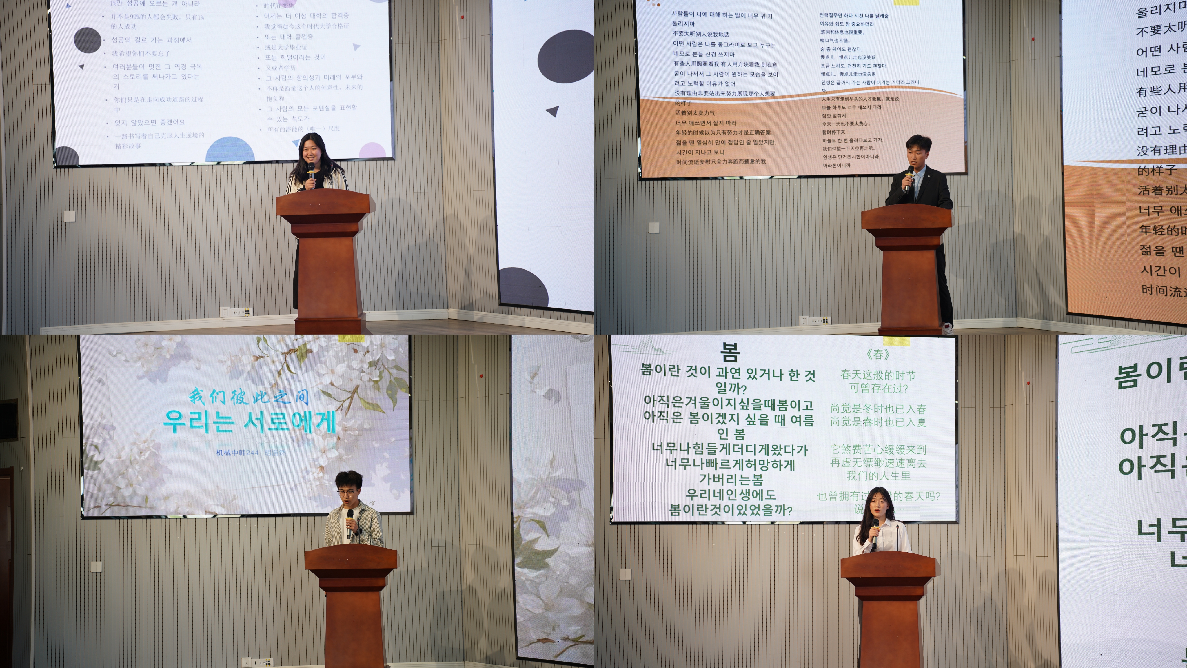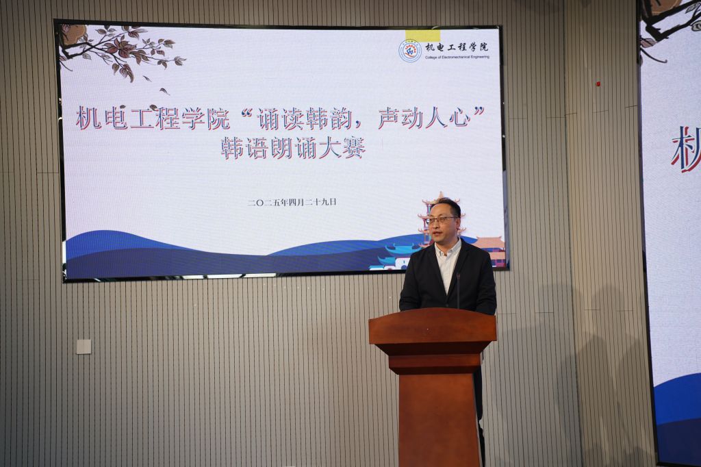 韩韵悠悠耳畔响,诗风缕缕润心田。2025年4月29日下午,best365体育官网平台成功举办“诵读韩韵,声动人心”第一届韩语朗诵大赛。此次大赛旨在提升学生韩语水平,激发韩语学习兴趣,吸引了机械工程(中韩合作办学)专业、材料成型及控制工程(中韩合作办学)专业学生的广泛参与。best365体育官网平台副院长李剑光、合作办学办公室主任付平、中韩合作办学师生代表80余人参加此次活动。韩语教师刘雪云、马敏、李静作为本次评委。